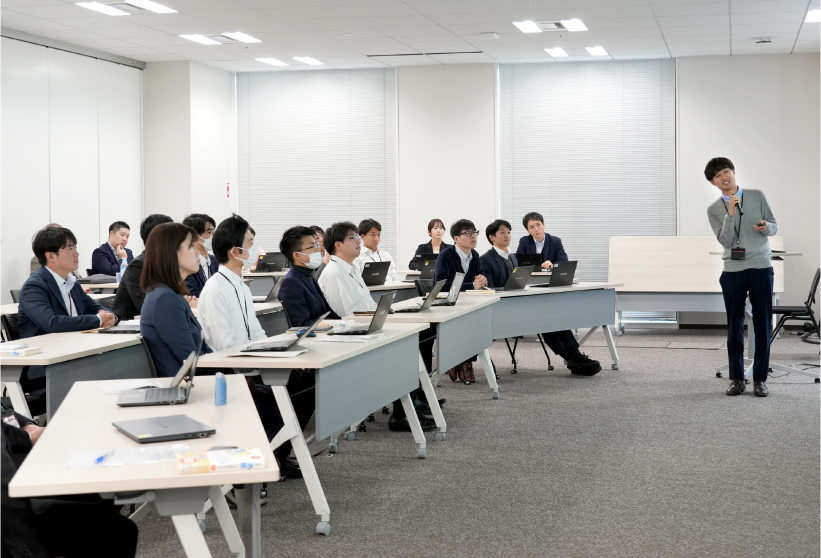 日本臓器製薬では、新入社員の入社後数カ月間にわたって、社会人としてのマナーやスキルの習得、MR職の場合はMR認定試験対策や製品知識の習得などを目的に「導入教育」を行います。若手社員、中堅、管理職向けの「階層別研修」、「コンプライアンス研修」なども実施しており、研修制度を通じて社員の継続的な成長を支援する体制を整えています。